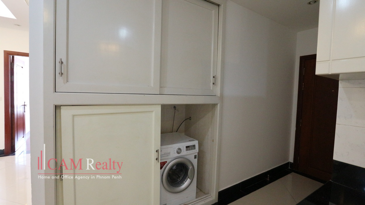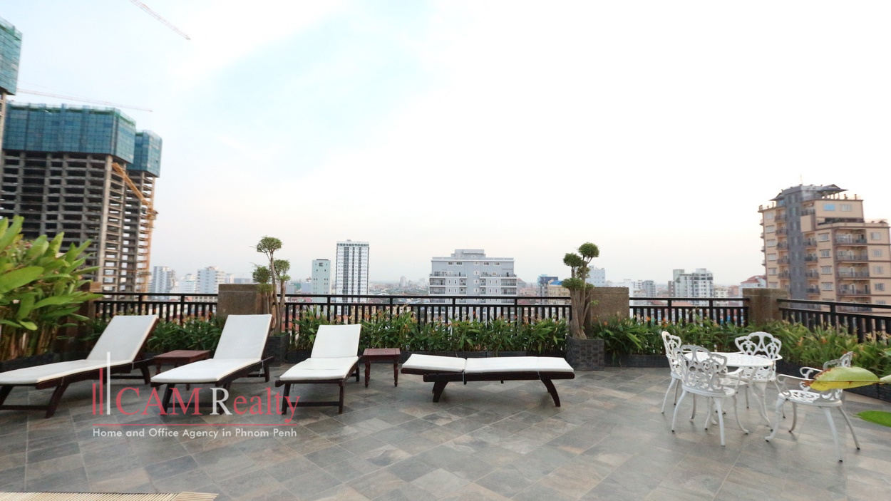 3 bedrooms apartment for rent near Russian Market area – Phnom Penh. This apartment featuring 130 square meters and inclusive full set of furniture, 3 bedrooms, 2 bathrooms, open plan – living room, 1 kitchen and private balconies and comes with beautiful open rooftop swimming with nice sun bathing space and fully equipped gymnasium.