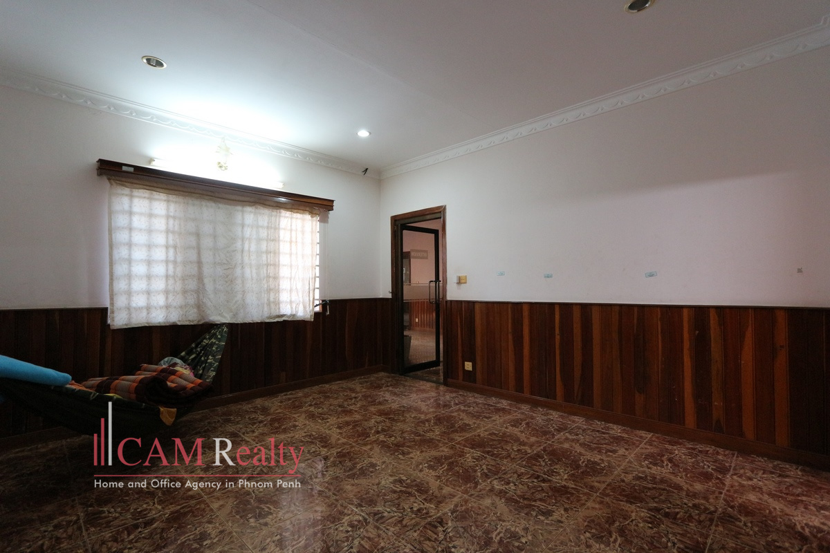 Spacious commercial villa for rent in Boeng Tumpun area. The house comes in 2 storeys with open spaces with 3 bathrooms and large parking space that would fit 5 cars and 30-35 motorbikes. It is open for renovating and gracing.