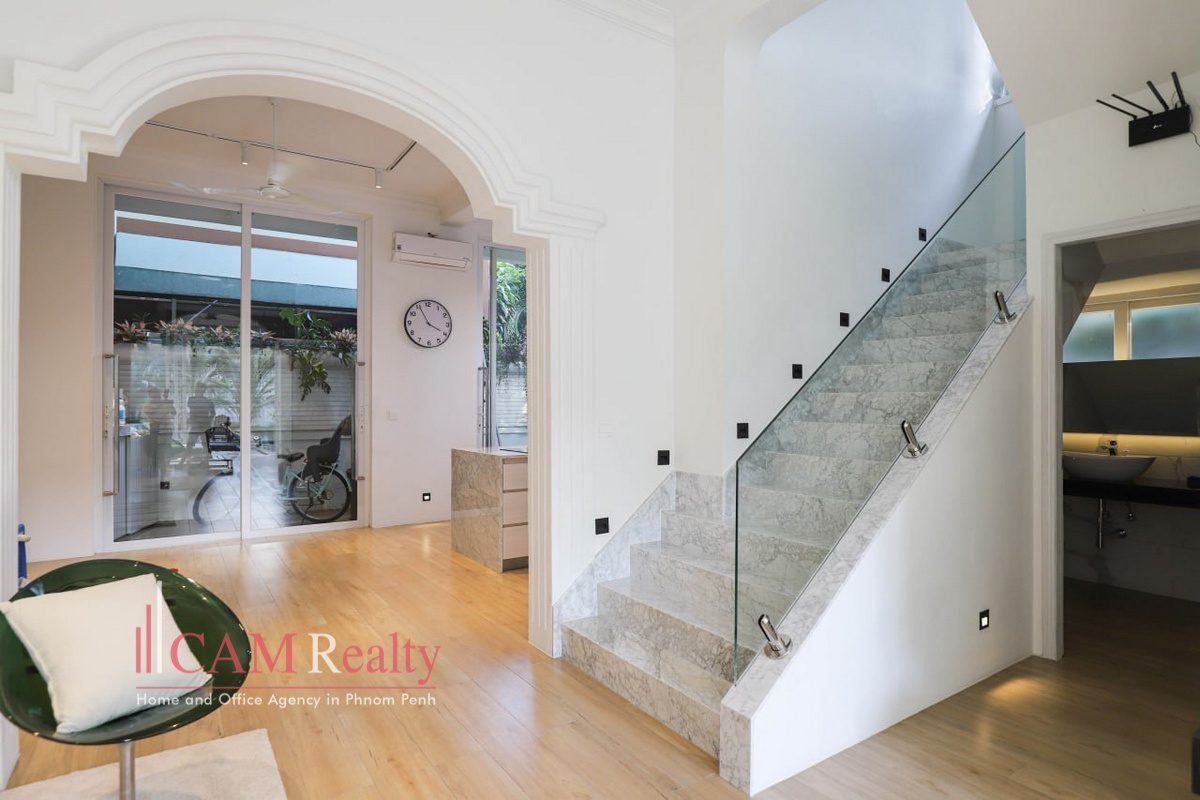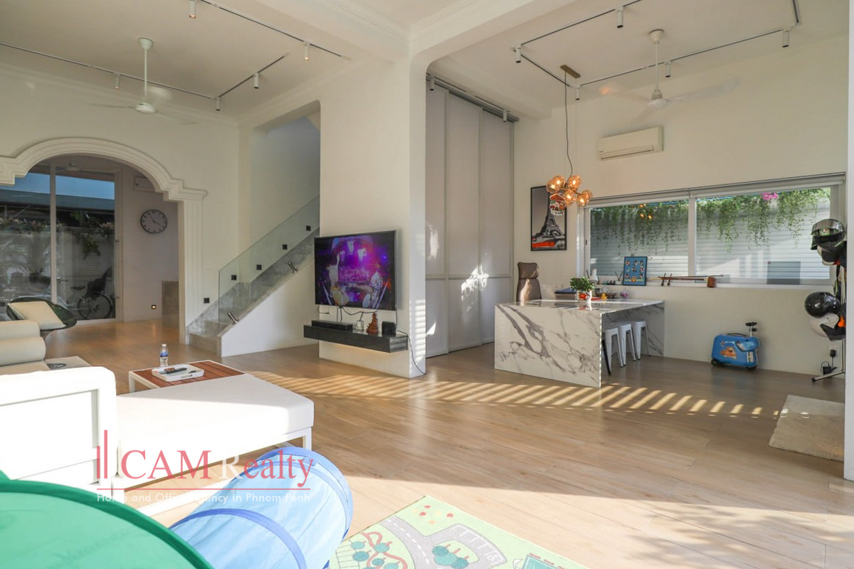Stunning 4 Bedroom Villa For Rent in Tonle Basak. Location: Sangkat Tonle Basak, Khan Chamkar Mon, Phnom Penh. 190m from Invictus International School (Phnom Penh), 240m from Bassac Street, 500m from AEON Mall Phnom Penh, and 700m from Independence Monument.