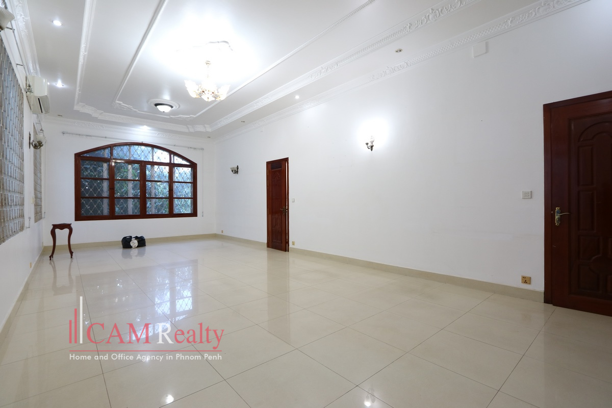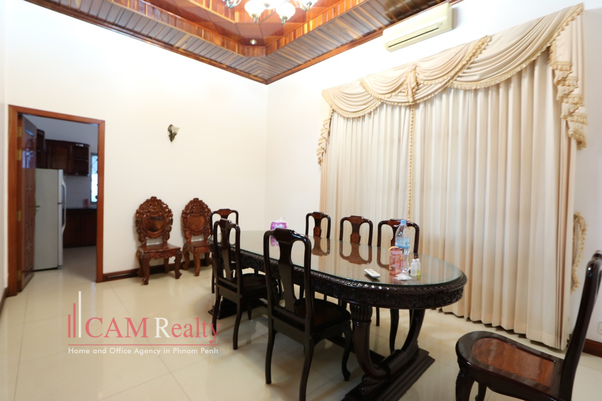 7 bedrooms villa for rent in Toul Kork – Phnom Penh. This villa is located around 650m from Thai Huot Market, 1.2km from Royal University of Phnom Penh (RUPP), 1.7km from TK Avenue Mall, and 3.9km AEON Mall Sen Sok City where international schools, malls, restaurants, and coffee shops assemble around.
