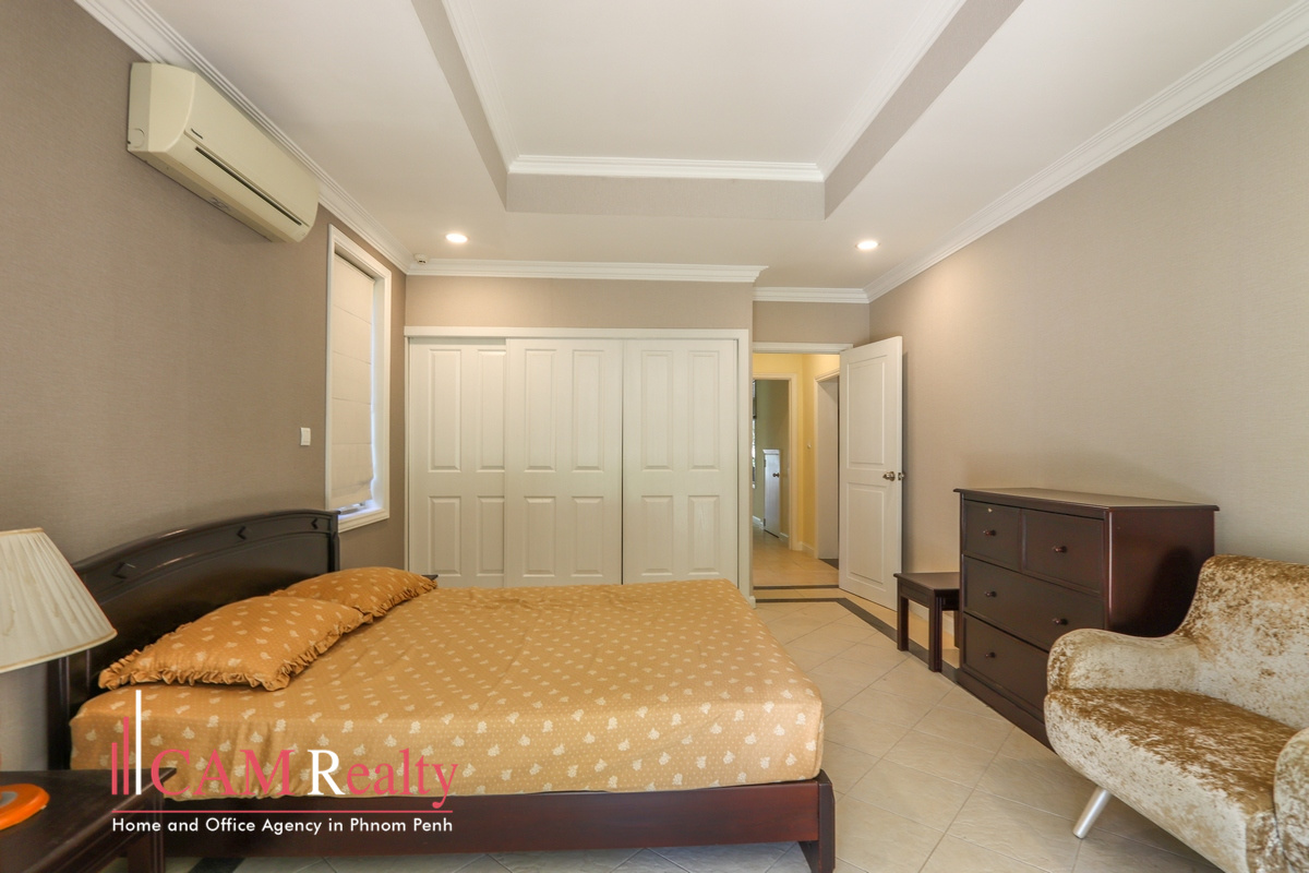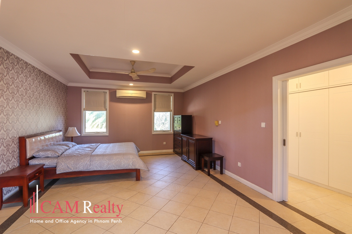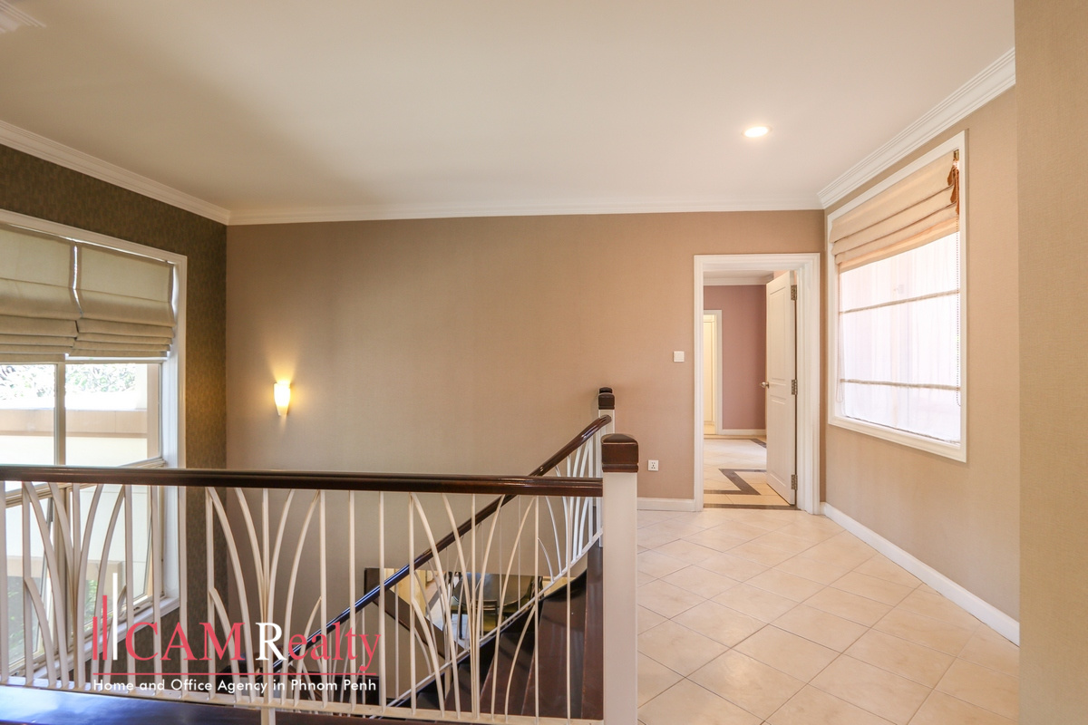 Discovered a comfortable 4-bedroom villa for rent in North Park, Street 2004., within a gated community, it offers a peaceful environment surrounded by nature, providing a serene and unique living experience in Phnom Penh City.
