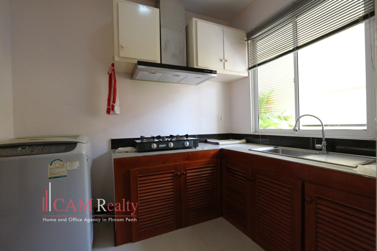Modern style 1 bedroom apartment for rent in Russian Market area, Phnom Penh. Located in a quiet, nice and safe environment – in the the middle of city which close to business center, market, mini mart, modern coffee shops, pubs, international school, bus terminal, NGOs, etc. It is 350 meters from Russian Market, 10 minutes to go to BKK1 area, 20 minutes to go to Riverside area.