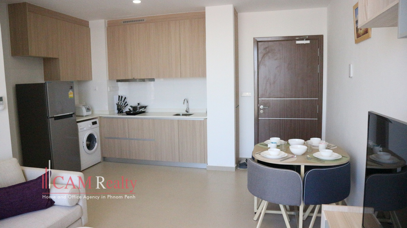 Western style fully furnished 2 bedrooms serviced apartment for rent in BKK3 area. It is located in a walkable distance to BKK1 area. It is a comfortable location for residence and surrounded by eateries, coffee shops, less than 7 minutes walk from Lucky Super market along Preah Sihanouk Blvd.